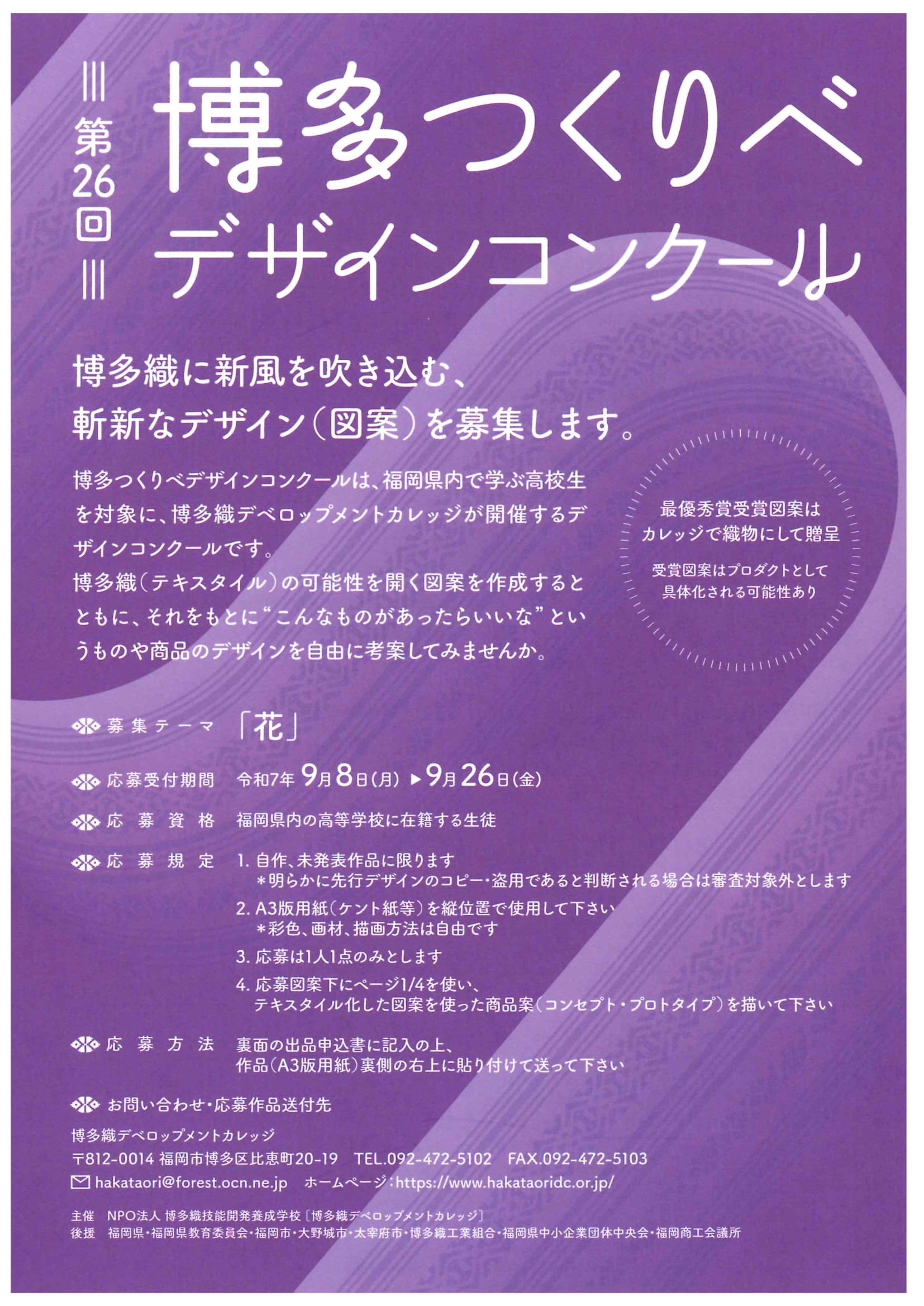 第26回博多つくりべデザインコンクール審査結果と表彰式のお知らせ 【2025.11/10】