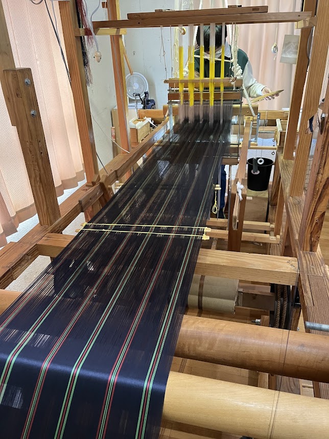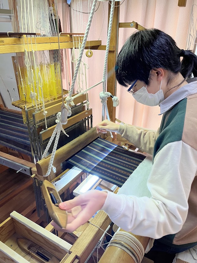 2025年5月から制作を開始し、本カレッジ工房3階のジャカード手織機を用いて製織されたものです。
